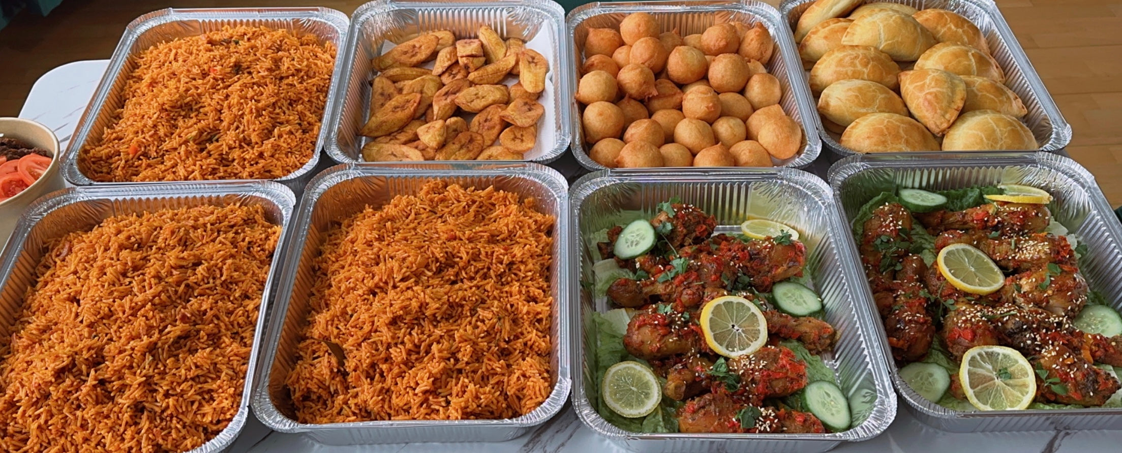 Sally’s Kitchen serves delicious West African dishes, sweet treats, and custom party platters for any occasion.